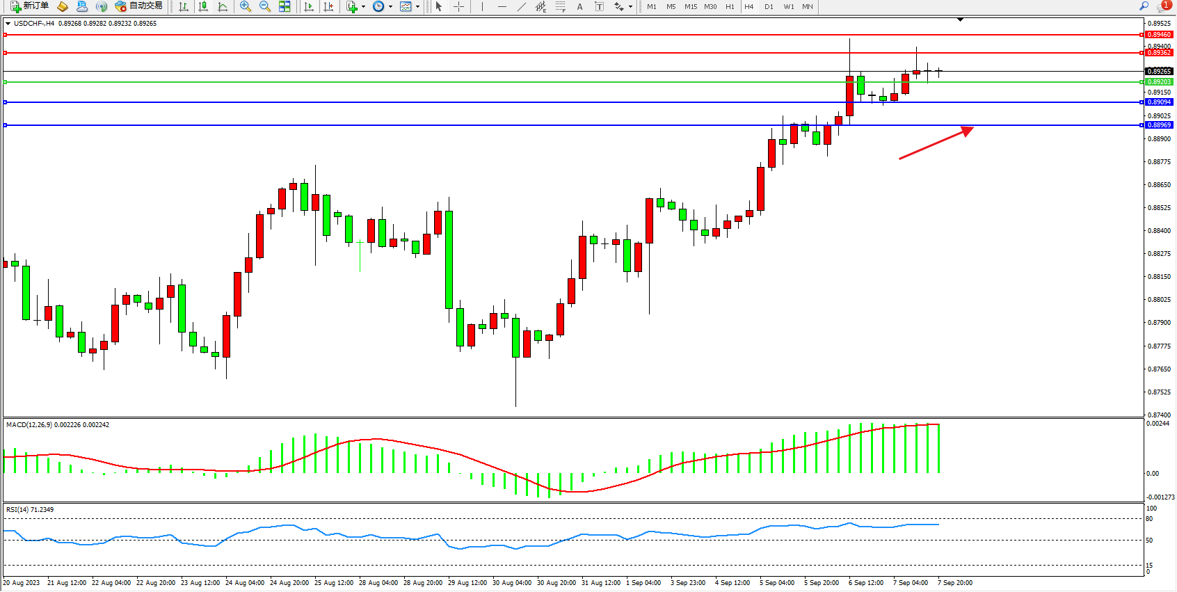 交易策略:0.89203上方看涨,目标0.89362  0.89460