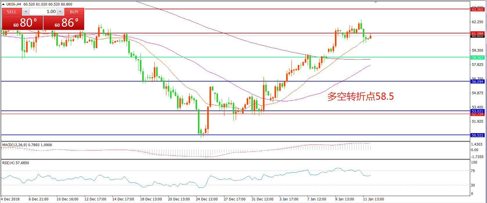 交易策略:在58.50之上看涨,目标61.00 63.50