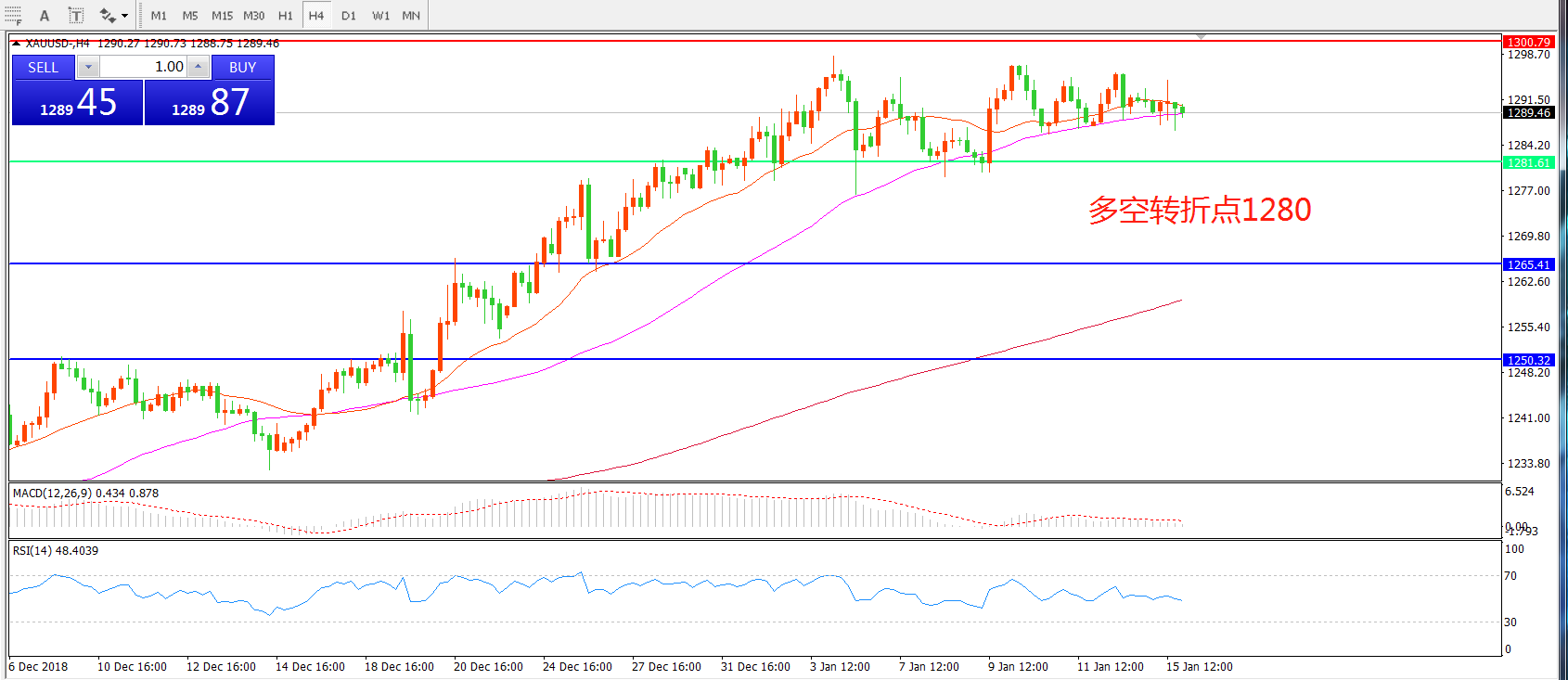 英国梅政府的脱欧协议被下议院以432-202票大比例否决,反对党工党领袖科尔宾表示,将于1月16日向议会递交针对保守党政府的不信任动议,符合市场预期。无序脱欧的风险已经增加。现货黄金周二(1月15日)小幅收跌,美市盘中最低下探至1286.30美元/盎司,但日内跌幅有所缩减,短期内仍陷于窄幅波动之中。