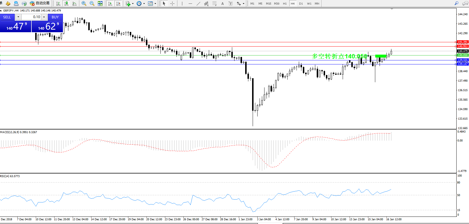 交易策略:140.050上方看涨,目标140.953、141.391
