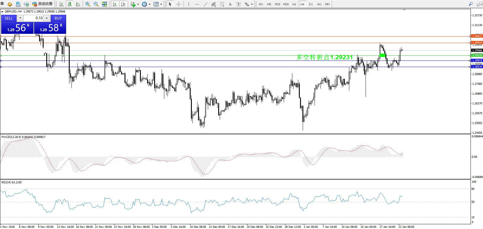 交易策略:1.29231上方看涨,目标1.30019、1.30422