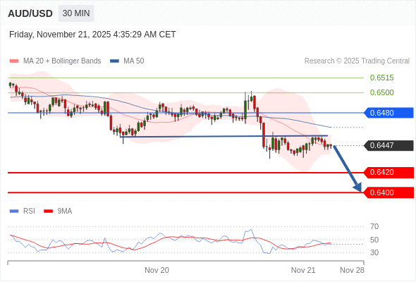 在 0.6480 之下,看跌,目标价位为 0.6420 ,然后为 0.6400 。