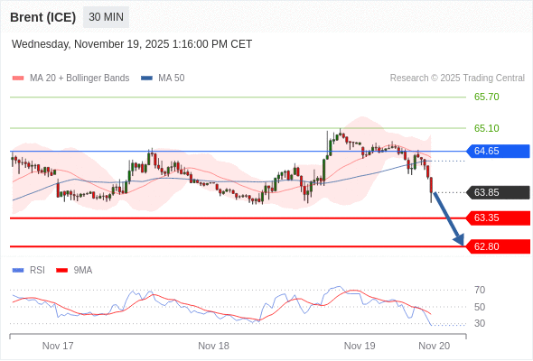 在 64.65 之下,看跌,目标价位为 63.35 ,然后为 62.80 。