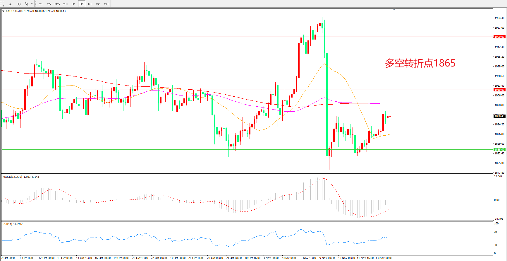目前疫苗取得突破的利好正在被不断消化,市场开始将焦点转向下一主题,眼下欧美疫情的快速蔓延令市场风险情绪逐渐消退,在这种不确定性弥漫的情况下,金价仍然会受到市场的追捧。