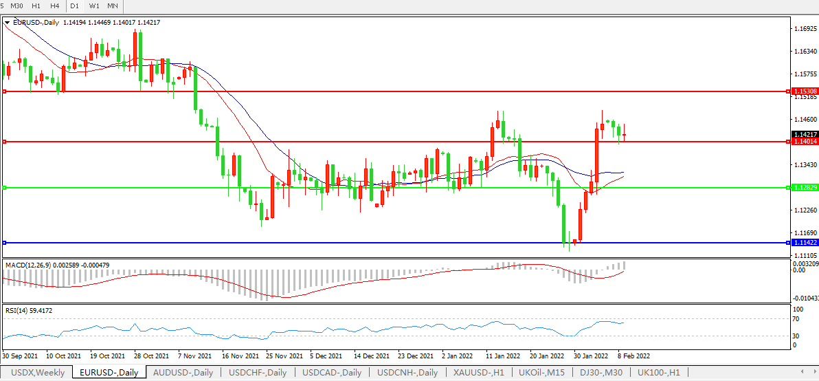 欧元兑美元上涨0.09%至1.1425,受益于欧洲股市和债券价格走高;1.1400的支撑位安然无恙,但未能突破前日高点1.1449。上周,欧洲央行行长拉加德首次表示,今年有可能收紧货币政策,这让投资者猝不及防,投资者纷纷修正了对欧洲央行加息的预期。但拉加德周一表示,没有必要大幅收紧政策,试图缓和投资人对央行采取鹰派行动的预期。