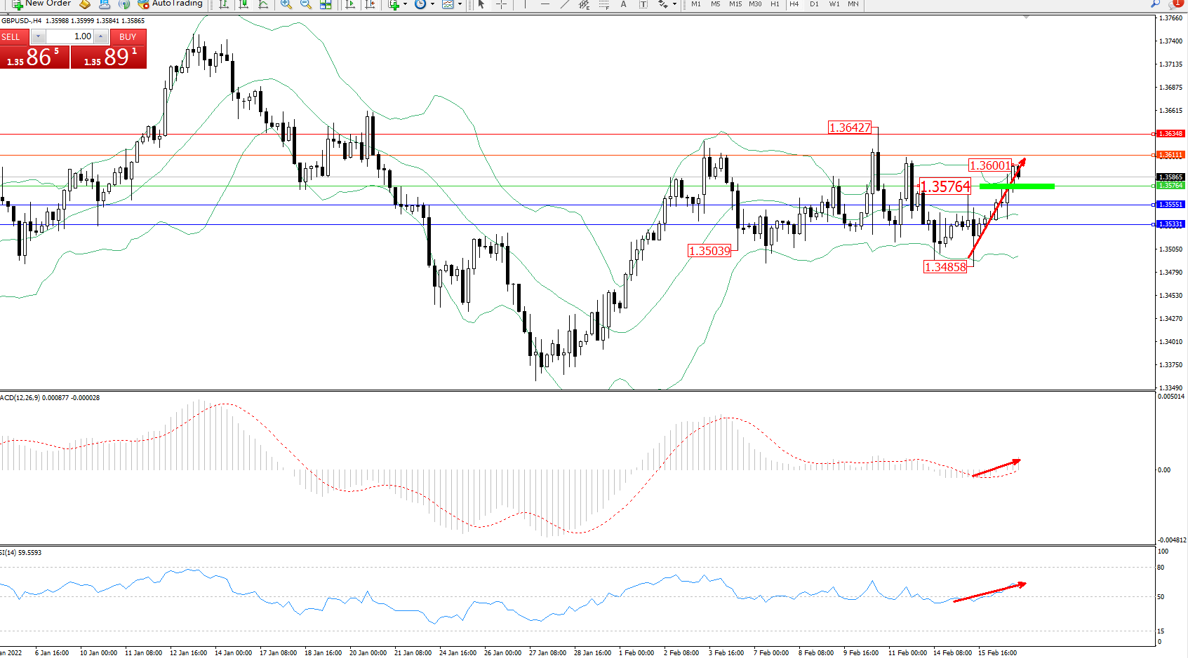 交易策略:1.35764上方看涨,目标1.361111.36348