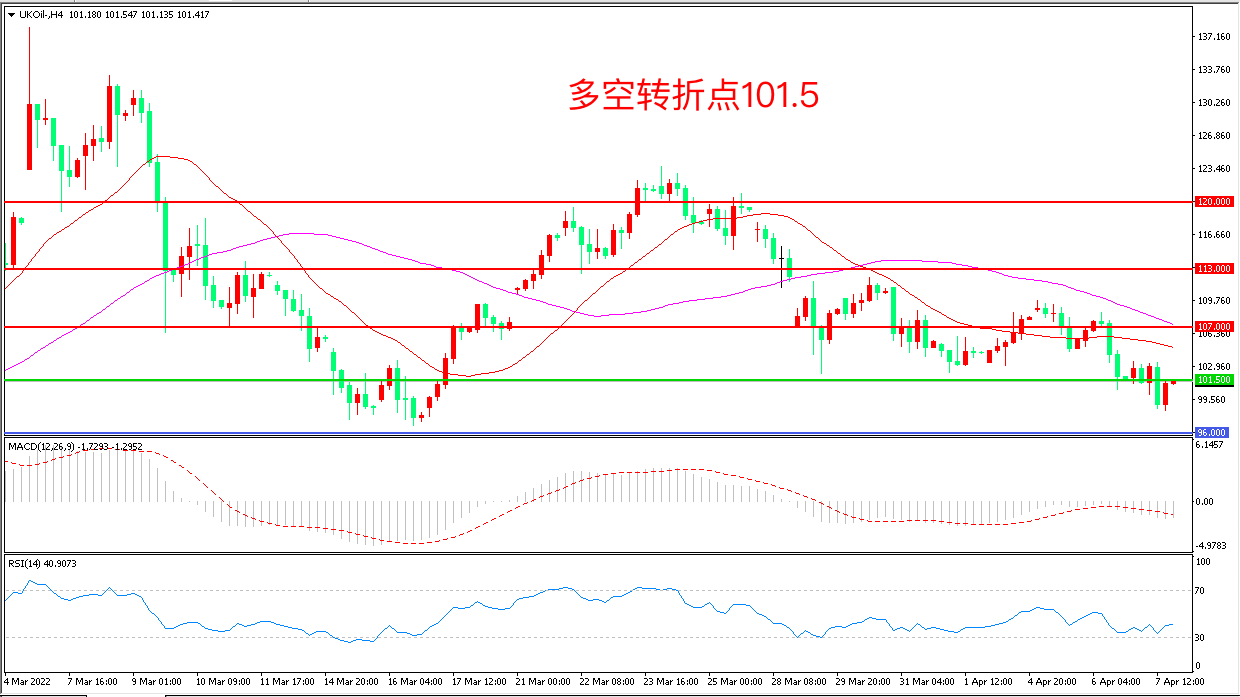 周四(4月7日),国际能源署(IEA)署长比罗尔表示,将协调成员国释放1.2亿桶石油。这是IEA 47年历史上最大的油储释放量,布伦特原油小幅回落,收报101.41美元/桶。但高盛等投行普遍认为抛储计划无法解决石油市场的“结构性短缺”, 俄罗斯4月份原油产量或将比前月减少约50万桶/日,油价或将面临关键考验。