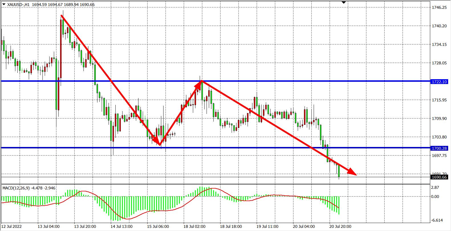 交易策略:在1700.00之下看跌,目标1685.00 1670.00
