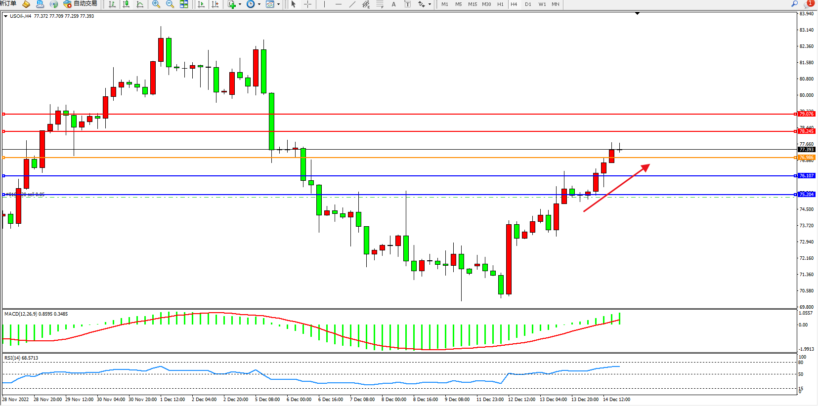 原油维持77.393附近震荡,美国至12月9日当周EIA战略石油储备库存 -474.8万桶,前值-209.7万桶。美国至12月9日当周EIA战略石油储备库存降幅录得2022年10月7日当周以来最大,为连续第66周录得下降。