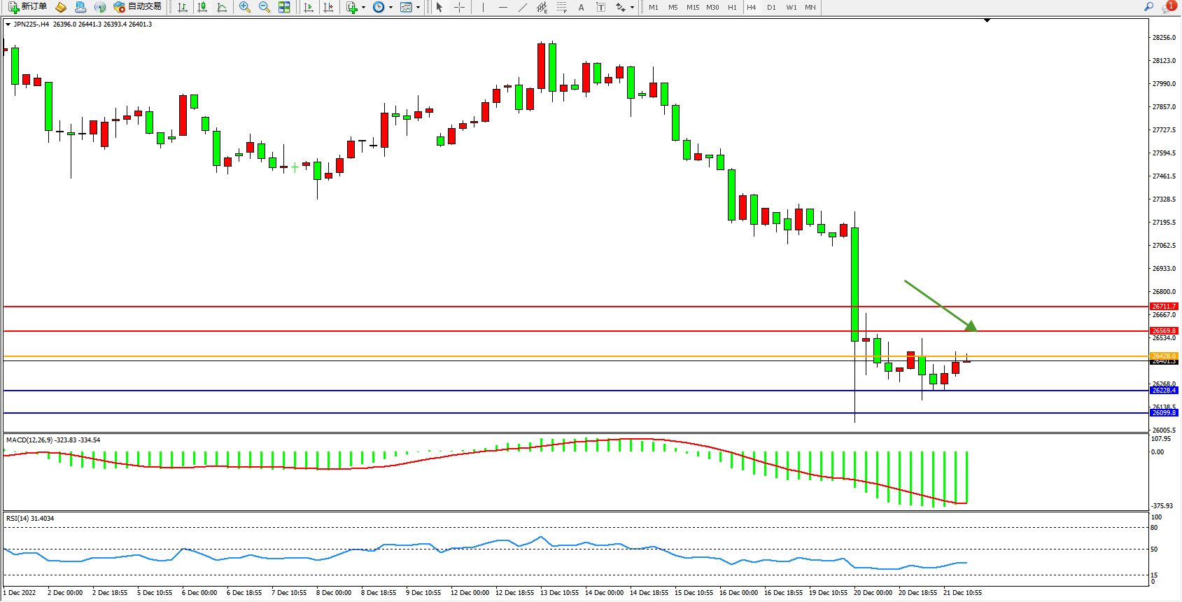 日经225指数12月21日(周三)收盘下跌188.53点,跌幅0.71%,报26379.50点。日本央行行长对收益率曲线控制(YCC)的政策调整可能是退出超宽松货币政策的第一步。越来越多的迹象表明,通胀可能会维持在日本央行2%的目标之上,因为成本驱动因素推动了基于更高工资和更强劲消费的积极价格机制。