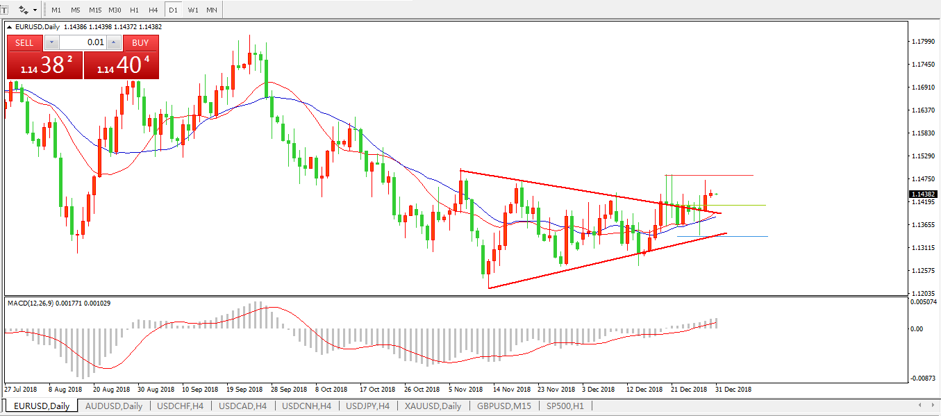 交易策略:在1.1400之上,看涨,目标价位为 1.1485 ,然后为1 .1500